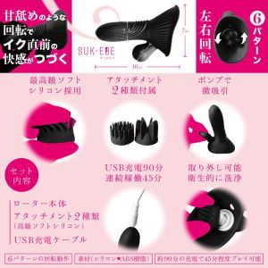 しかも、このローター、左右に回転するパターンが6種類もあるから、飽きっぽい子も大丈夫!いっぱい試して楽しみましょう!さらにね、敢えて「微」吸引ポンプも付いてるんだって!ポンプをプッシュすると、少し吸いつかれる感じがするんだよ♪もうたまらない焦らし効果があって、イクまでの興奮がアップするんだよ!