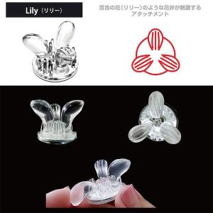 まずは「リリー」!花びら型のアタッチメントで、花の内側に入り込んだ乳首をしっかりと刺激して快感へ導いてくれるんだ!