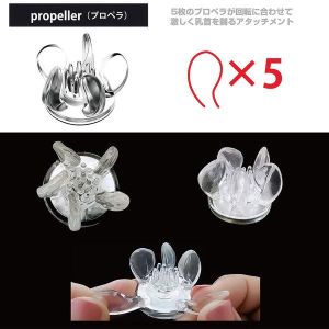 続いては「プロペラ」!5枚のプロペラが次々と乳首を刺激するアタッチメントだね。乳首の先端を小さなブラシで刺激するから気持ちいいんだよ〜!