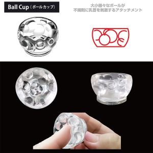 最後は「ボールカップ」!カップの中に大小さまざまのボールが不規則に配置されてるんだ。シリコンのボールが乳首を包み込んで、あらゆる角度から刺激を与えてくれるんだよ〜!
