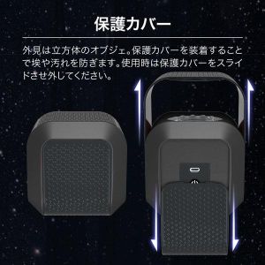 『コンフュージョンには本体と一緒に使うためのガイドブックや充電ケーブルもついてくるよ!ちなみに、サイズは103mm×103mm×103mmで、重さは452gだよ!』