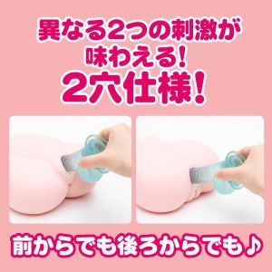 そして、このオナホは2穴仕様だから、超迫力なんだ!しっかりしたヒップがあって、2つの刺激を味わうことができるんだ!どんな体位でも思いっきり楽しめるよ!