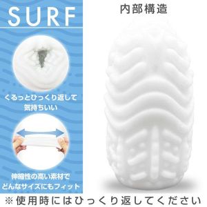SURFっていうのは、波のような太ヒダが全部にあって、すごく優しい刺激をするんだって!ヒダ特化刺激っていうんだよ。見た目以上にしっかりとした刺激があって、気持ちいいんだよ。