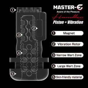 『Master-E』シリーズは、男性のケアを追求し、新しい快感を提供するでちゅ♪ただの機能じゃなく、持ちやすくてストレスフリーなガジェットで遊べるでちゅ!ハンドラーには振動とピストン機能がついてて、上下に揺れて官能刺激を与え、震えて快感を増幅させるでちゅ。振動・ピストンパターンは全部で9種類あって、お好みの快感を楽しめるでちゅ。ハンドルもついて持ちやすくなりました!使い終わったら簡単にきれいにできるし、USBで充電して60分遊べるでちゅ。MASTER-Eハンドラーで気軽にピストン&振動を楽しみましょう!