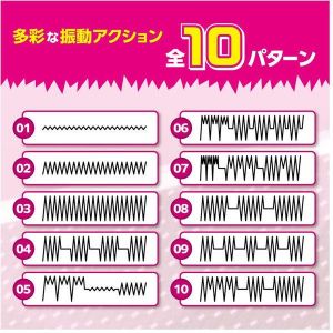 使い方は、電源ボタンを長押しすると振動が始まるの。振動切替ボタンで10種類の振動アクションを繰り返せるから、プレイの幅も広がるよ!