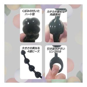 ねえねえ、超可愛い新作グッズが出たよ!それが「カラフルアナルビーズ ブラック」なの!ミニサイズだから、ちっちゃい可愛い感じなのがポイントなんだって!形はハート形で、なんと4個も連なってるの!大きさはね、先っぽが20ミリで、次は24ミリ、それから26ミリ、最後が27ミリになっちゃうんだ!奥に行くほど太くなるから、気持ちいい快感を段階的に楽しめるの!すごくわかりやすいでしょ?