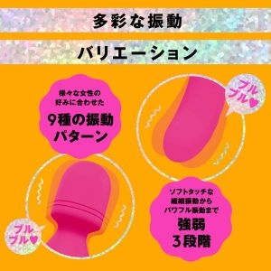 すご~い!最強の電マとバイブが1つになっちゃった!女の子それぞれの好みにあわせて、9種類の振動と3段階の強さが選べるよ!バイブはあったかくて、お肌に触れてるみたいだよ♪お風呂でも使えるよ!静かだから、周りを気にせずに楽しめるんだ。使用前後も水洗いできるし、とっても衛生的だね!
