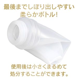 キャップもワンタッチだから片手で簡単に開けられるし、3つ穴ノズルで糸切れ抜群の構造だから、プレイ途中の継ぎ足しなんかにも便利なのよ。柔らかいボトルなので、最後まで絞り出せるのもいいわね。