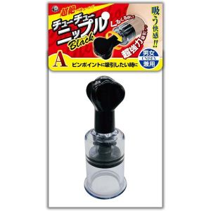 ねえ、ねえ!知ってる?この「チューチューニップルブラック A」というアダルトグッズってすごくすご~くバキューム力が強いんだって!乳首を吸って調教することができるの!吸っている方も吸われている方も快感を感じることができるんだよ!しかも、とっても簡単でつまみをくるくる回すだけでいいんだって!下についているところを押し当てて、つまみをゆっくり右に回すだけで強力に吸ってくれるんだ!ローションをつけたらもっと気持ちいいんだって!乳首以外でも、アイデア次第で色んな部分を吸って調教することができるんだよ♪あ、そうそう!サイズは内径が31mmで外径が44mmだよ!