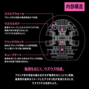 ブロック状の突起が組み合わさっているから、亀頭をはじくように刺激しちゃうの!最奥部のデコボコ柱が尿○口を刺激するから、ウズウズする気持ちよさが味わえるんだって〜!