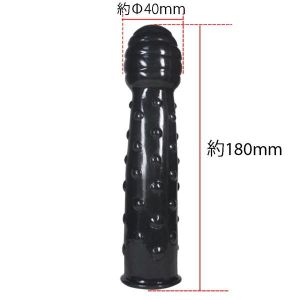 この商品はヘッド部分が40Φミリの極太タイプだし、本体部分にはイボイボ突起が無数についていて、全長は約180ミリだから、奥まで突ける一品なんだって!