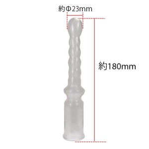 サイズは、ヘッド部分が23Φミリの先太でその下のくびれ17から19Φミリのギャップ感、全長180ミリの本体下方には32Φミリの円盤突起で挿入感抜群!そして、安心・安全の日本製だよ(^^)/