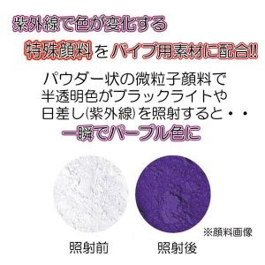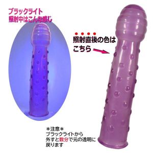 MIYABIから新素材のディルドが出たよ!「ブラックライトシリーズ」っていうんだ。紫外線当てたらカラーチェンジするの!色も変わるよ!半透明からパープルになるよ!照射時間で濃さも変わるし、ア●ルバイブにも変身するの!柔らかくて気持ちいい素材だから野外でもできるよ!頭部分が23Φミリ、くびれが17から19Φミリ、全長180ミリだよ!日本製で安心だよ!