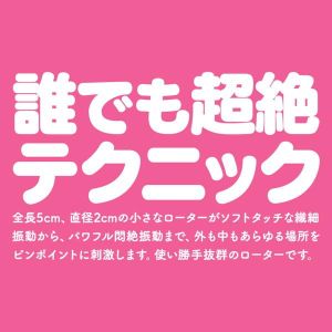 ぷにっとやわらかローター!ふんわりとろける部分には、ソフトシリコンを内蔵しているから痛くないよ!シリコンは高品質だから、肌に直接触れても大丈夫。水に強く、お手入れも簡単!特別なコーティングが付いているから、いつでも清潔に使えるよ。小さなローターだけど、ピンポイントであちこちを刺激してくれるよ。9つの振動パターンもあって、テクニックアップ!コード長も長くて使いやすいよ。静かだから周りを気にせず使えるよ。生活防水で検査番号は2003567!