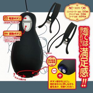 「つまむっ!」「きもちいいっ!」Wの快感が味わえちゃう、えっちな大人用アイテムだよ!大きなにっぽうも使えるバネ式クリップと、操作がカンタンなコントローラーがセット!お肌に優しいシリコンで、静かに使えるよ。乳首だけじゃなくて、他のところもつまんじゃおう!本体サイズはコントローラーが100mm、クリップが53mm、コードが94cmで、単4電池が2本ついてるよ。