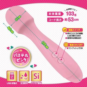 ここは極上の快感を求めるための場所!!アソコを刺激する小型デンマゼッチョウはキュートなデザインで持ち運びも簡単!ピンクとブラックの2色から選べるよ。103gと軽いのにUSB充電でコードもいらないの!挿入OKで肌触りもマシュマロのようにやわらかいよ。10パターンの振動で自分好みの快感を味わえるの!充電時間は1時間で使い続けられるのは40分だよ。付属品にはUSB充電ケーブルもあるから安心してね。