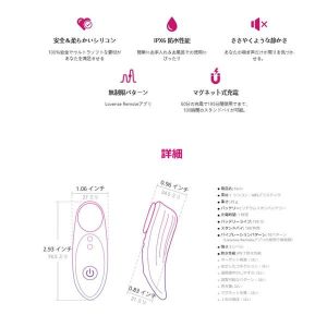 Gとソト、一緒に楽しめるローター!中と外にモーターがあり、10パターンの振動で最大15Mまでワイヤレス操作できるよ。洗えるし静かだから、楽しめるよ。充電90分で最大60分使えるよ。うふふ♪(99文字)