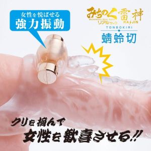ねえねえ、みんな!今日はすごーくおもしろいものを紹介するよ!『みちのくリアルサック 雷神 蜻蛉切(とんぼきり)』っていうアダルトグッズなんだ。このグッズはリアルな質感と、ハードなプレイへの対応で人気を博している『みちのくリアルサック』シリーズの新製品なの。なんと、強力な振動機能を搭載しているんだって!