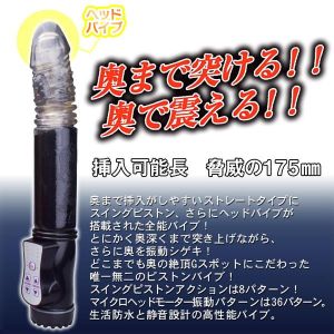 すごーい!KING OF VIBEのXenoシリーズに新しいバイブが登場したよ!一本物×ピストンタイプで奥まで簡単に挿入できるんだって!ストレートタイプにスイングピストンとヘッドバイブがついているから、すごい全能バイブなんだよ!奥の奥まで突き上げながら、さらに振動もあるから、絶頂Gスッポトまで気持ちいいよ!スイングピストンは8種類、マイクロヘッドモーターは36種類のパターンがあるんだって!生活防水で静音設計で高性能なバイブなんだよ!