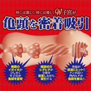 内部の形状もすごいんだよ。イボイボのW子○が亀頭を直撃してくれたり、螺旋状のヒダヒダが全体を密着しながら吸引してくれたり、突起が尿○にヒットして、素敵な刺激をくれたりするんだよ。ねぇねぇ、変態痴女の割れた果実を堪能してみたくなるかもしれないね!