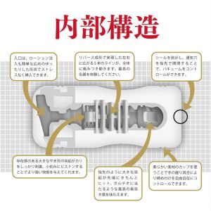 内部は「超高密度構造」を採用していて、リアルな感触を再現しています。衛生面も安心して使えるように、名器覚醒シールを剥がした後は、通気穴でバキュームも調整可能!さらに嬉しいのは、嫌な匂いのしない「高品質ゲル」を使用!そして、国産素材&国内生産なので、安心・安全ですよ!もちろんMADE IN JAPANです!