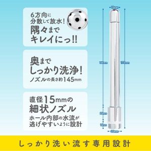 オナホを洗える「ONAWASH」っていうシャワーノズルがあるの!取り付けも簡単だよ。6方向に水を出せるからホール中をキレイにできるんだ。145mmのロングノズルで奥も届くよ。でもね、軽いホールだと膨らんじゃうことがあるから要注意!メッキは剥がれやすいから、硬いものに当たらないように気をつけてね♪