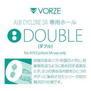 ねぇ、ねぇ、 A10サイクロンSAっていうおもちゃがあるんだって!ボリュームたっぷりの国産素材で、マイルドなイボと過激なヒダの2つの内壁があって、1つのボディに詰まってるから、どんな気分でも楽しめるんだって!でも、注意だよ!A10サイクロンSAは別売りだからね。それを買ってからじゃないと、この「ダブル」っていうおもちゃは使えないんだって。