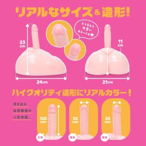 このディルドは、自分の好みに合わせて高さや角度を調節できるから、自分で好きな体位で気持ちよく使えるのがいいところ!クッションなどを使って高さを調節して、自分好みの角度に調整しよう♪このディルドは、本体のサイズが縦24cm×横21cm×高さ23cm、棒の長さは120mm、先端部分の最大径は32mmだよ。直接肌に触れるものだから、MADE IN JAPANで作ってあるから安心だよ♪