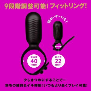 このローター、自分にピッタリのサイズに調整できるフィットリングがついてるんだって。しかも、9段階も調整できるんだから自分だけのオリジナルフィット感覚を味わえるんだよ!ベルト式なので、プレイ中でも装着や外しの手間がラクラクなのもうれしいね!