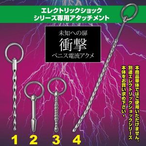 「エレクトリックショックコックループ&ブジー」につなげて、好きな大きさで使えるブジーアタッチメントがあるよ。ビリビリと痺れる電撃が全身を通るから、気持ちいいよ。すごい重たそうなメタルボディで、マニアも欲しがるようなデザインだね。でもね、この商品だけでは使えないから気をつけてね。