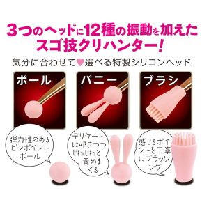 わたしが見つけたおもしろグッズは、いろんなところで感じちゃうアイテム!まるでオシャレなスマホみたいなデザインだし、小さくて持ち運びも楽々。シリコンヘッドを3種類もつけ替えて、ボールでピンポイント攻撃したり、バニーでくすぐったかったり、ブラシでデリケートなところもOK!振動の種類も12個もあるから、いろんな楽しみ方ができるんだよ!