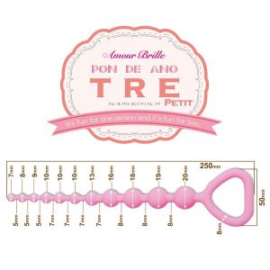 きらきらの女性のためのシリーズ「アムールブリエ」から、人気のある「ポンデ アノ」に、新しいバージョンが登場したの!その名は「ポンデアノ ドゥーエ」と「ポンデアノ ドゥーエ プチ」だよ!有名なドーナツみたいで、かわいいフォルムが女性のア○ルプレイにばっちり!10個のビーズが互い違いにつながったア○ルビーズだよ。先端は5ミリで初心者も安心だね。最大径は20ミリで、上級者も大満足!石鹸で洗っても安心。パッケージもかわいいから、アダルト商品っぽくないのもいいところだよ!