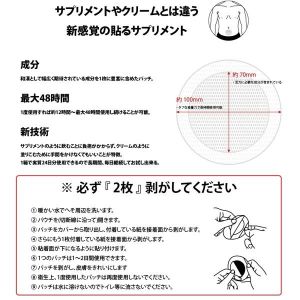 「めんずぱっち」って言うサプリがあるんだ!12枚入りでパワーアップできるの♪すごい成分がヘソの周りから体に入って、めざしたところまで浸透するんだよ!使い方は、パッチをとりだしてシールを剥がしてから、腹のヘソに貼り付けるだけ!1枚で1~2日使えるんだけど、使ったら捨てるよ。水に溶けないからトイレじゃ流さないでね。