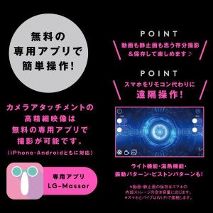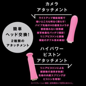 それ以外にも、2種類のアタッチメントで簡単にヘッドを交換できるから飽きなく使えるんだ!カメラアタッチメントでは、カメラ機能だけでなく、リニアピストンと振動機能のダブル責め構造でより強力な刺激を楽しめるんだ。そして、ハイパワーピストンアタッチメントは縦振動で激しい快感を味わえるよ♪