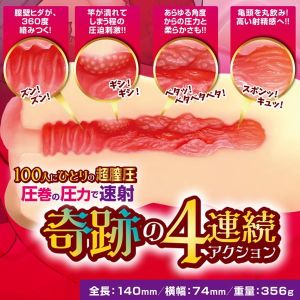 中身もすごいよ〜!ヒダがいっぱいで、どの方向からでもち○を包み込んじゃうんだ。それで、ものすごい圧力で亀頭も丸ごと飲み込んでくれるんだって!