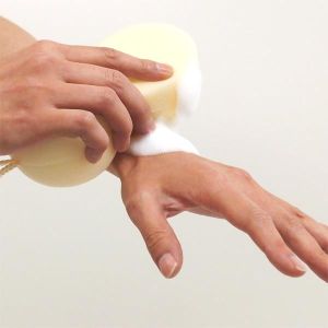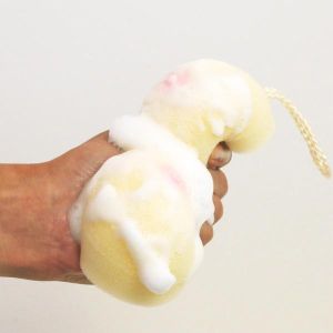 手のひらで持てる小ぶりサイズだから、持ちやすくて嬉しいよね。柔らかい2つの山で洗うこともできるし、スポンジで包んで洗うこともできるよ!泡をたーっぷりつけて、ボディのすみずみまで洗い流す楽しみがあるんだ。