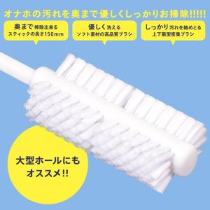 そして、スティックの長さは150mm!長いから、奥の奥まで掃除できるんだよ!しかも、ブラシはソフト素材で作られていて、優しく洗えるから、オナホールに傷をつける心配もないんだ!