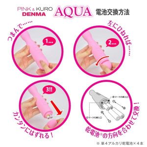 ほら、電池にもこだわったにゃ!アルカリ単4乾電池4本で使えるから、いつでもどこでもすぐに使えるにゃ。重量は150gだから、持ち運びもカンタンだにゃ。この「クロデンマ アクア2020」、どこでも使えて、いっぱいの快感が味わえるにゃ!ぜひお試しくださいにゃ!