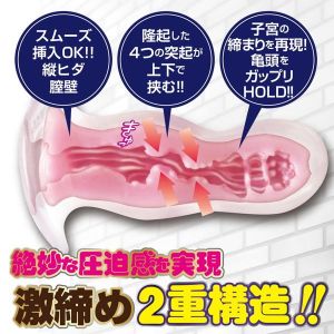 挿入部はローションポケットが付いてるから液だれしないし、中間に位置した突起が上下でサ○を圧迫してくれるし、最奥に構える子○ポットで亀頭をガップリ押さえつけてくれるんだって!