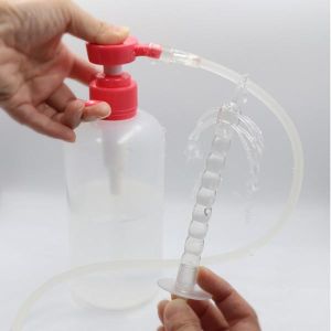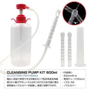 ねえ、みんな!素敵なアイテムを発見しちゃったよ♡「クレンジングポンプキット 600ml」っていうんだって!これね、使い方いろいろできるすごいものなの!手動式で、大きな600mlのボトルで、9つの穴から水を出すことができるんだ!だから、一回で全体を洗えちゃうの!しかも、勢いも弱くて、安全に優しく洗えちゃうんだよ!ノズルもね、柔らかくて傷つけない素材で作ってあって、安心して使えるの!60cmのチューブも使いやすくて、オナホールだけじゃなくて、プレイ前後の洗浄や注入プレイにも使えるんだって!そして大切なことだけど、使ったあとはノズルカバーで簡単にきれいに保管できるよ!これが全部付いてるから、すぐに使えるんだ。これで、自分や彼氏とのプレイがもっと楽しくなっちゃうね!
