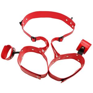 ねぇねぇ、秘密の痴態に興味ある?フェチなSMラインナップの「抱え込み拘束」っていう遊びだよ。手首を拘束したり、ベルトで首につなげたりして、身動きが取れなくなっちゃうんだ。恥ずかしいポーズも楽しいよ。下着とニーハイソックスもついてるから、パッケージモデルみたいになれるよ。すぐに遊べるよ。フェティシズムSMが味わえて、パートナーの見たことない姿が楽しめるよ。