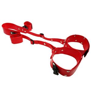 辱め遊戯「ワキ見せ拘束」レッド 日本製 〜ブラ・パンツ・ニーハイストッキング付き〜