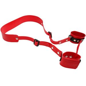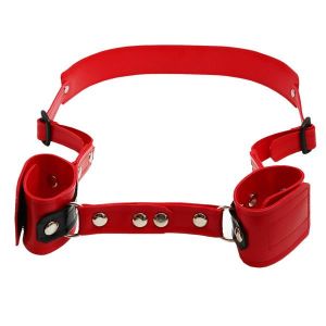 辱め遊戯「ワキ見せ拘束」レッド 日本製 〜ブラ・パンツ・ニーハイストッキング付き〜