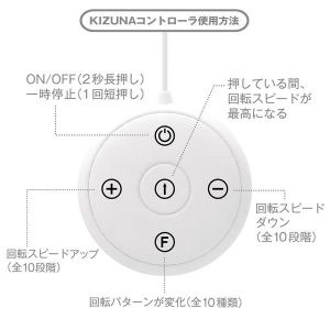 KIZUNAシリーズには、回転チクニーグッズから、各種ローターまで、充実のラインナップがあるので、自由にグッズを組み合わせて、あなただけの快感を楽しんでね!コントローラサイズは、H62×W62×D25mmmmで、コード長は380mm。本体重量は20g、箱サイズはW65×D35×H100mmで、総重量は24gだよ。