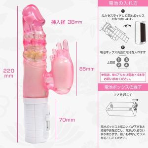 最後に、本体サイズ:全長220×W40×D80mm、挿入径:最大38mm、本体重量:215g(電池を含まず)、パッケージサイズ:H260×W80×D48mm、総重量:325g、付属品:単4マンガン電池×4本(動作試験用)、食品衛生法[厚生労働省告示第370号]検査済みなんだ。これはまさに『ご褒美』だよ! 是非使ってみてね。
