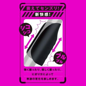 おちんちんが震えちゃう!パワフルローター搭載の電動オナホール!9つのパターンで、異次元の快感をもたらすよ!ぷにっとした柔らかいシリコン素材で、フィット感ばっちりだよ!強く握ればすごい締めつけ、優しく握ればフェザータッチの気持ちいい刺激。握り方の強弱で自由自在!充電用USBケーブルもついてるんだ。水にも強くて、安心して使えるよ!