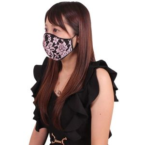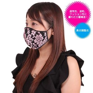 女性用 薔薇刺繍レースメッシュマスク ピンク最安値通販と紹介