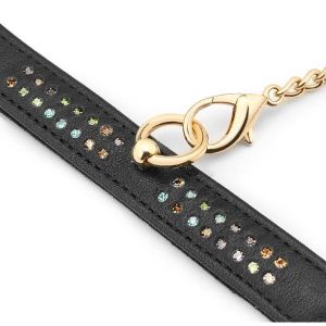 お姉さん、これおしゃれ~!コシが強くて丈夫で、柔軟性もすごいんだって。本牛革で、なじませるともっと柔らかくなるんだって。長時間使っても快適だよ!光沢感のある宝石が、手作業でひとつずつはめられてるんだって。キラキラしてて、雰囲気が変わっちゃうくらい魅力的なんだよ。洋服やドレスにも合うし、チェーンを外せばアクセサリーとしても使えるんだって!