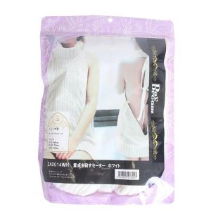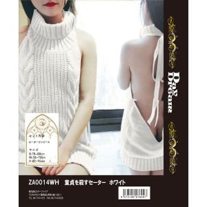可愛すぎるセーターがあるの! 裸エプロンみたいでちょっと大胆なのに、女の子だったら着たくなっちゃうの! バックがこんなに開いたノースリーブだってあるんだよ! タートルネックもかわいい! ホワイトで清楚な感じがするんだよね。サイズはセーターワンピースで76cmだよ♪