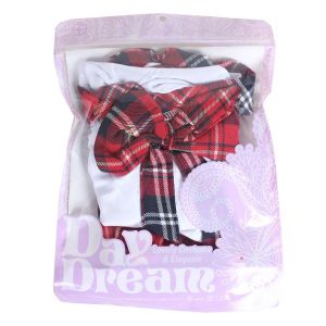 このタータンチェックのセーラー服セットを着ると、どこに行っても可愛いってウワサなのよ。たとえば、イベントやパーティーに行くときは、みんなから注目されること間違いなし!あの男の子に気に入られたり、友達から褒められたりするかもしれないわね。もちろん、おうちでゆっくり過ごすときも、このセットを着たら、テンション上がりそうだわ!